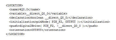 PLC modules are accessed through locations. In order to use external I/O modules, the user doesn’t have to know the electronic components and internals of modules or utilize any low-level programming. All the user needs are predefined textual xml definitions of module locations. Based on these definitions, the development environment transparently generates and includes all the neccesary low-level code into the program at compile-time.
